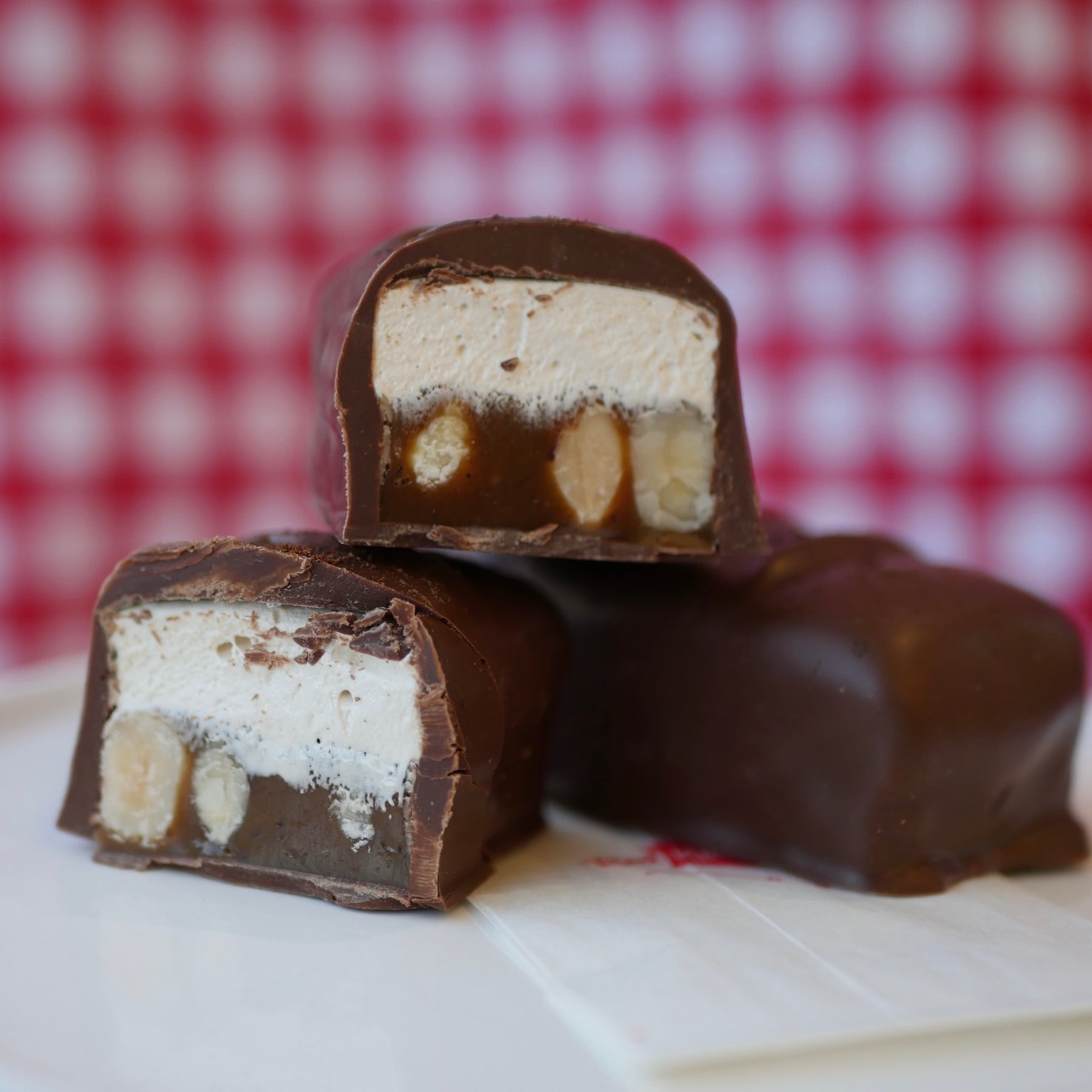 dark chocolate, milk, cream, brown rice syrup, sugar, hazelnuts, butter, coffee, powdered milk, egg whites
